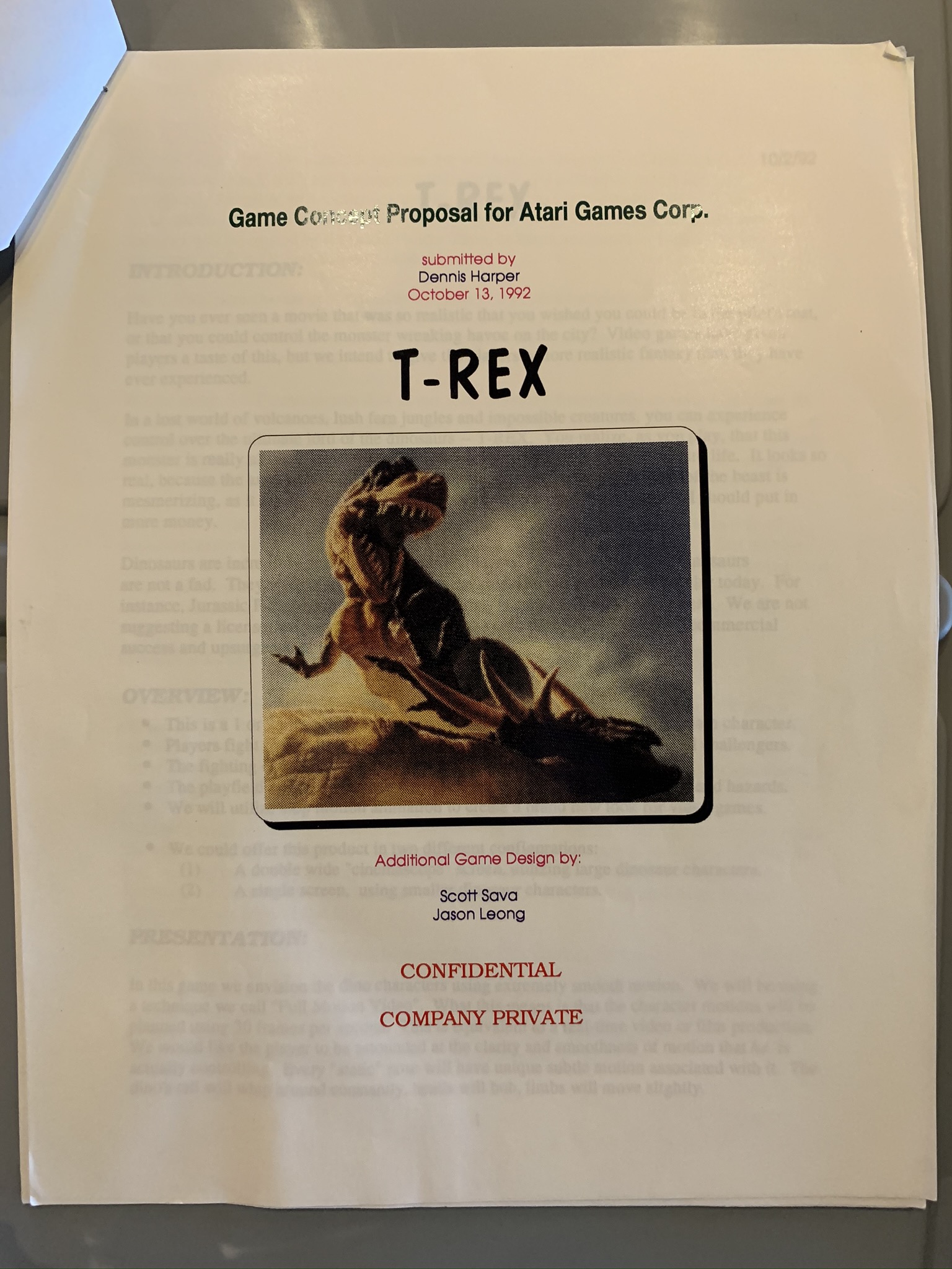 It was around the time of this cancellation that production began on a project called “T-REX” which was the codename of what would eventually become Primal Rage.