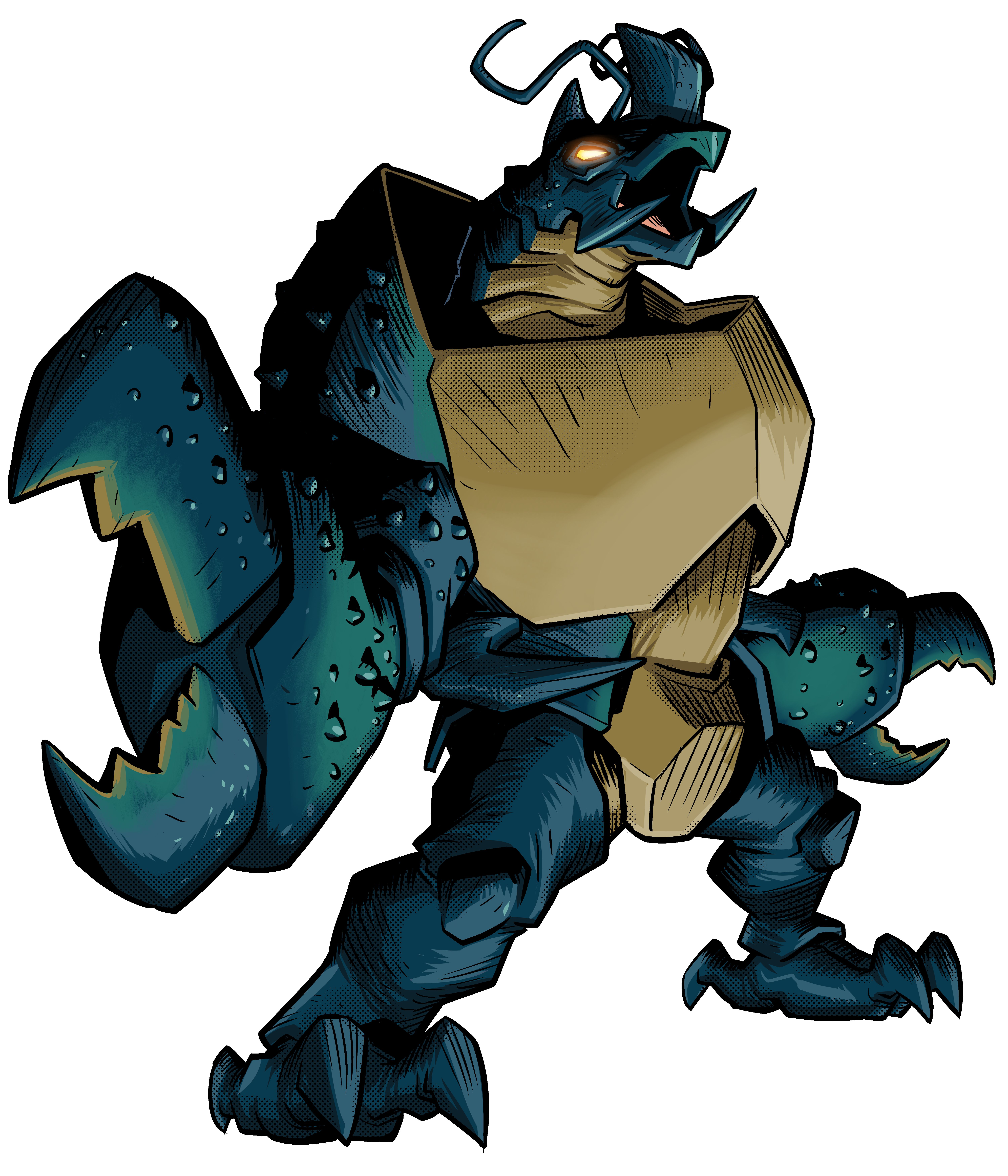 While I’ve talked about this game on the site before, keen observers will note some interesting new faces. You can see all four playable characters in action! Previously announced are Megadon the fire breathing kaiju, and Ganira the sea beast. New faces are massive super hero Aegis Prime, and giant robot Tempest Galahad!